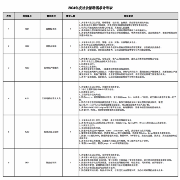 本次公开招聘为社会招聘。具体招聘岗位及资格条件,如下: